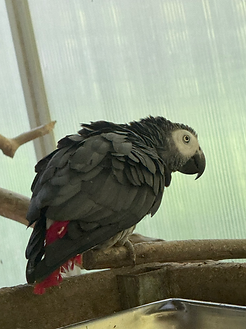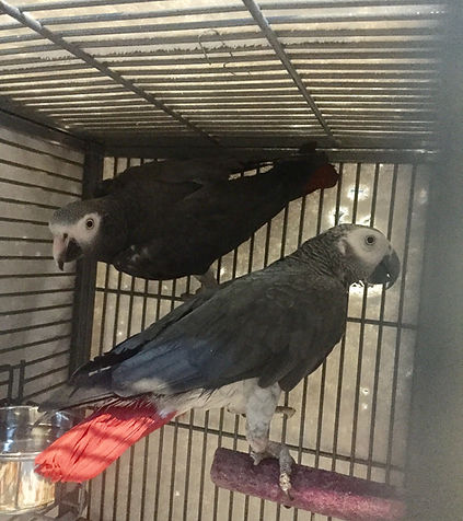 The owner of the home was well known to local police and animal control officers. She has a long history of psychiatric issues. The breeding and sale of the birds was how she supported herself. We had been visiting periodically, whenever we could talk our way in, to try to talk her into letting us provide her birds with new homes. She was about to be foreclosed on, and needed to get the birds and her dog out of the house. She could not take them with her where she was going to live. On what was to be our last visit, to pick up some paperwork on the birds, she started talking about the rest of her birds. We checked each room , but did not find any other birds. As we were about to leave, she asked us if we wanted to see the African greys. In the nearly year that this other board member, and the 3 months that I had been going with her to the house, not once had she ever mentioned the greys. We were led downstairs to a dark, dank basement, she turned on a small light. On the back wall, next to an oil tank and furnace, was a filthy cage with nothing in it, but a food dish, water dish and nesting box. There were no perches or anything else that provide a way for the birds to perch. We were shocked into silence at first. There was an African grey, Bego (whose mate had died) and Pina, an Timneh grey in the cage. She was trying to force them to breed. Unsuccessfully. As we had brought the carrier down with us, we told her we could take the greys with us. She said that she would help us get the birds out. She picked up a large stick and told us “she got the birds out of the box by banging on the bars behind the breeding box until they fell out”. Then she netted them, trapping them in the bottom of the cage until she could change their food and water dish. As she started to swing the stick, I rushed her and immobilized her while telling the other board member to get the birds and get out of the house. When I met my partner in rescue outside, we were both shaken. This person had birds throughout the house, in every nook and cranny, but she never mentioned the grays. We never did learn how long those birds were in the basement. I called the animal control officer to come pick up the dog, and we went back in the house to check one more time, we afraid we might have missed other birds. Then, we delivered the birds to (initials for privacy) GRL, she has been an excellent guardian for these birds, caring for them on their level of acceptance, and through her patience and love, they became less fearful. Her care has brought them back to good health. Although the birds are fearful of humans if they come too close, they are curious about who is in the house. When we would have our meetings at GRL's house, the birds would watch and listen from the other room (they could see us) and occasionally they would chime in. Unfortunately, GRL has had some medical issues that are now compelling her to find a forever home for Bego and Pina. All of us are very sad, as we all care deeply for Bego and Pina.
